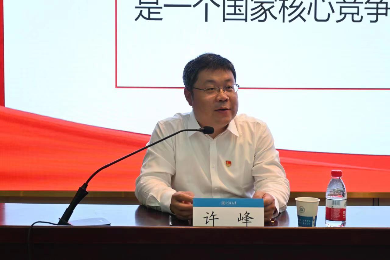 许峰副校长深入阐述了“习近平总书记关于青年工作的重要思想是做好新时代青年工作的根本遵循”,带领与会党员系统学习了党的十八大以来,习近平总书记围绕青年工作发表的一系列重要论述,全面回顾了百年河海胸怀“国之大者”,努力培养勇立时代潮头河海青年的发展历程,并号召广大学生躬身实践,立志做新时代好青年。