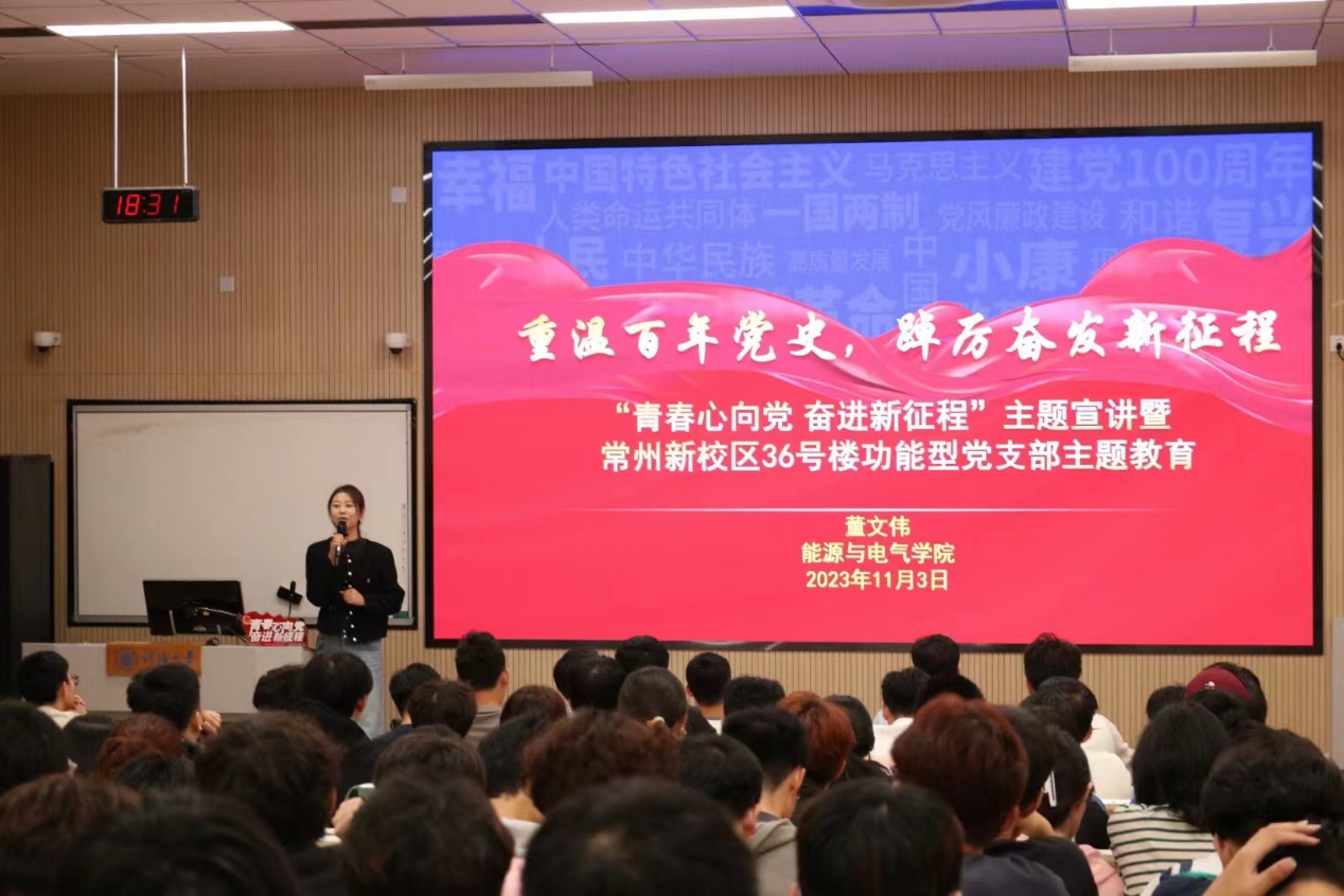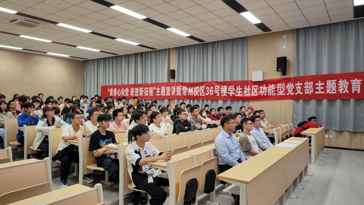 为深入学习习近平新时代中国特色社会主义思想,宣传贯彻习近平总书记在同团中央新一届领导班子集体谈话时的重要讲话精神,结合我校常州校区36号楼学生社区功能型党支部建设工作要求,国产自拍 于11月3日晚在常州金坛校区2号楼C110教室开展了“青春心向党 奋进新征程”主题宣讲暨常州校区36号楼学生社区功能型党支部教育活动。校后勤处副处长暨常州校区36号楼学生社区功能型党支部第一书记朱倬然老师、国产自拍 2022级本科生辅导员董文伟老师、2023级研究生新生和2022级100余名学生骨干参加本次活动。