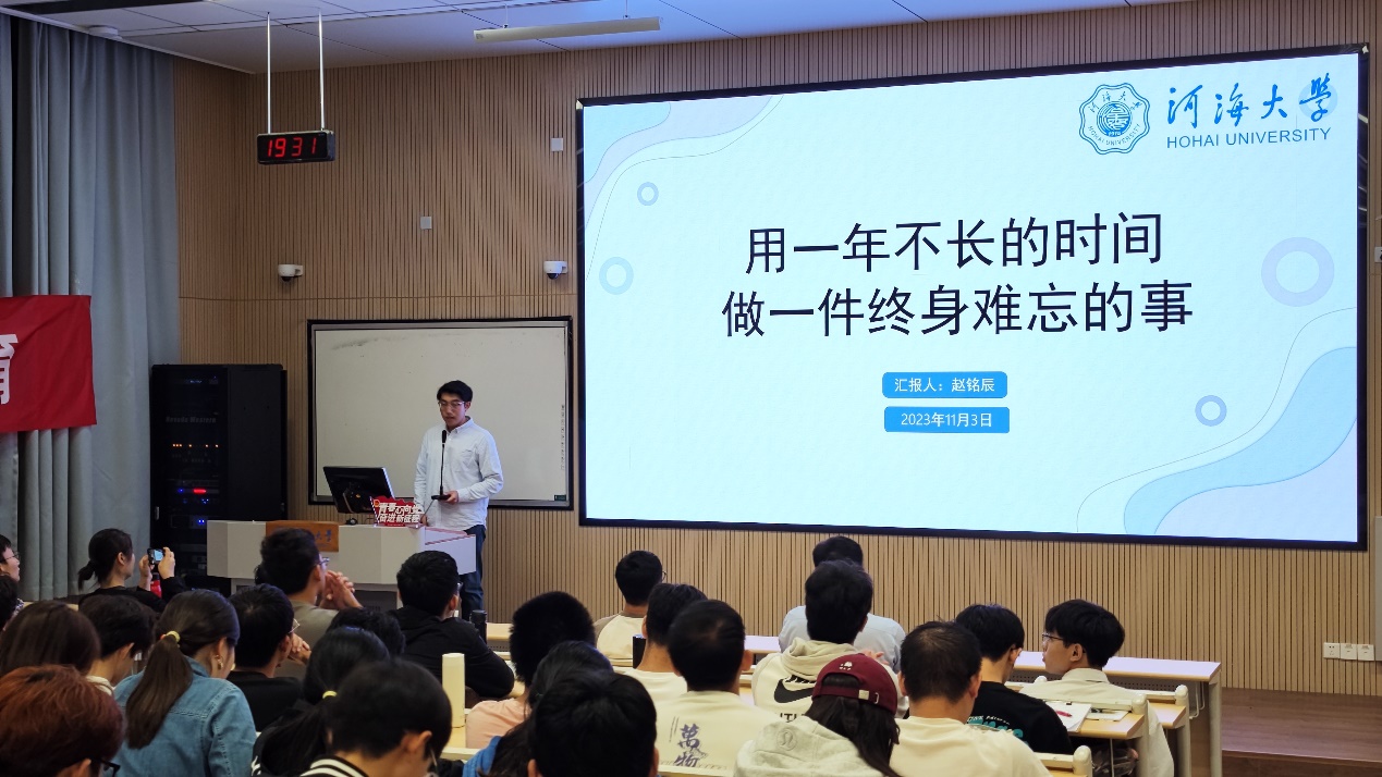 国产自拍 2023级研究生赵铭辰以《用一年不长的时间做一件终身难忘的事》为主题,讲述了他在秦巴山区难忘的支教回忆。从曾坐在教室中聆听学长关于支教经历的分享到受到启发而决定前往支教的初心,从本科阶段各项学生工作中的实践锻炼到石泉支教一年的成长收获,赵铭辰启发青年河海学子们将小我融入大我、用实际行动践行志愿精神,让青春在西部大地绽放绚丽之花。