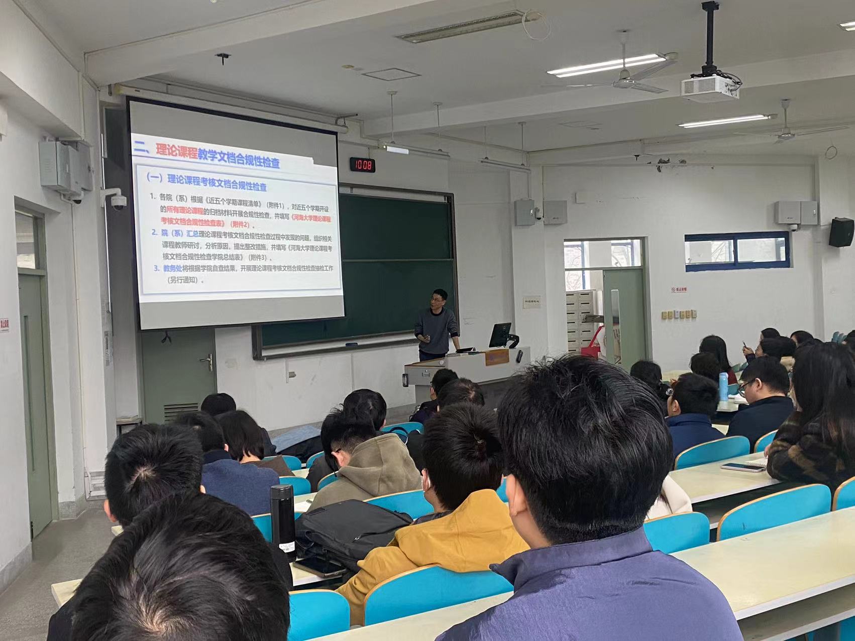 为规范课程教学文档建设,规范课程教学过程性考核,保障和提高教学质量,国产自拍 于3月14日上午在勤学楼5212召开课程教学文档合规性检查工作布置会。
