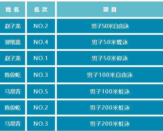本次比赛分为男子组和女子组,共有50米蝶泳、50米仰泳、50米蛙泳、50米自由泳、100米自由泳、100米蛙泳、200米自由泳、200米蛙泳八种项目。国产自拍 共有8名学生参赛,经过激烈角逐,获得男子50米仰泳第1名、男子50米自由泳第2名、男子200米蛙泳第2名、男子200米蛙泳第3名、男子100米自由泳第3名等成绩,展现了电气学子的拼搏精神和昂扬锐气。