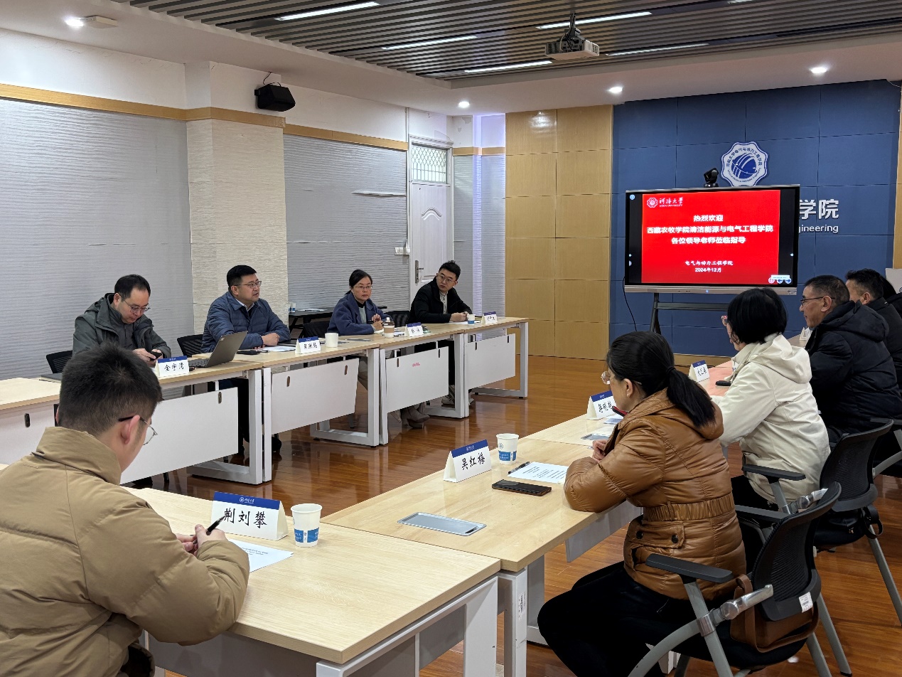 12月28日,西藏农牧学院清洁能源与电气工程学院大巴桑书记一行来国产自拍 调研交流。学院党委书记吴洪彪、副院长金宇清、副书记张炜、教师代表、联培学生代表等出席座谈会。