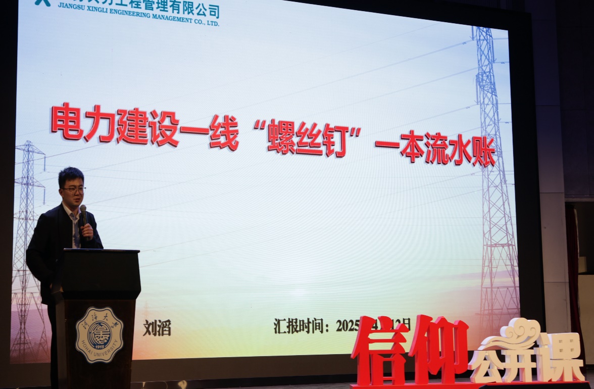 “‘青’听——做守护万家灯火的螺丝钉”。刘滔校友讲述了自己在工程一线的历练心得,强调了专业基础的重要性,告诫学弟学妹们要珍惜大学时光、学好专业基础,锻炼身体、提前规划、学好礼仪,以“早八虽然痛苦,但翘课会更让人秃头” 的诙谐语句提醒年轻学子们在校时光的宝贵。