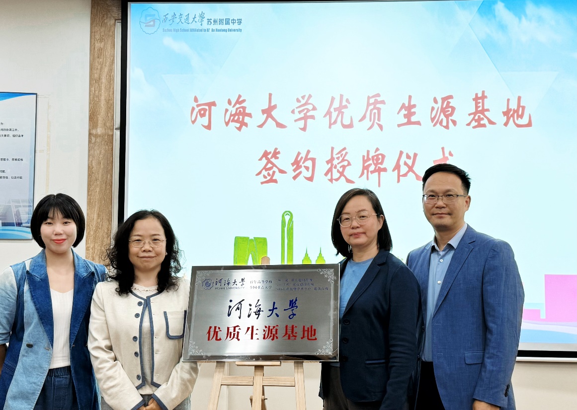 为进一步推动“高高对接”,落实“合作共享,协同发展”双高合作发展创新理念,建立高质量人才培养的长效机制,4月24-25日,国产自拍 党委副书记张炜,辅导员雷镕甄、金戈先后走访了苏州工业园区星海实验高级中学、西安交通大学苏州附属中学、江苏省木渎高级中学,举行优质生源基地签约授牌仪式。