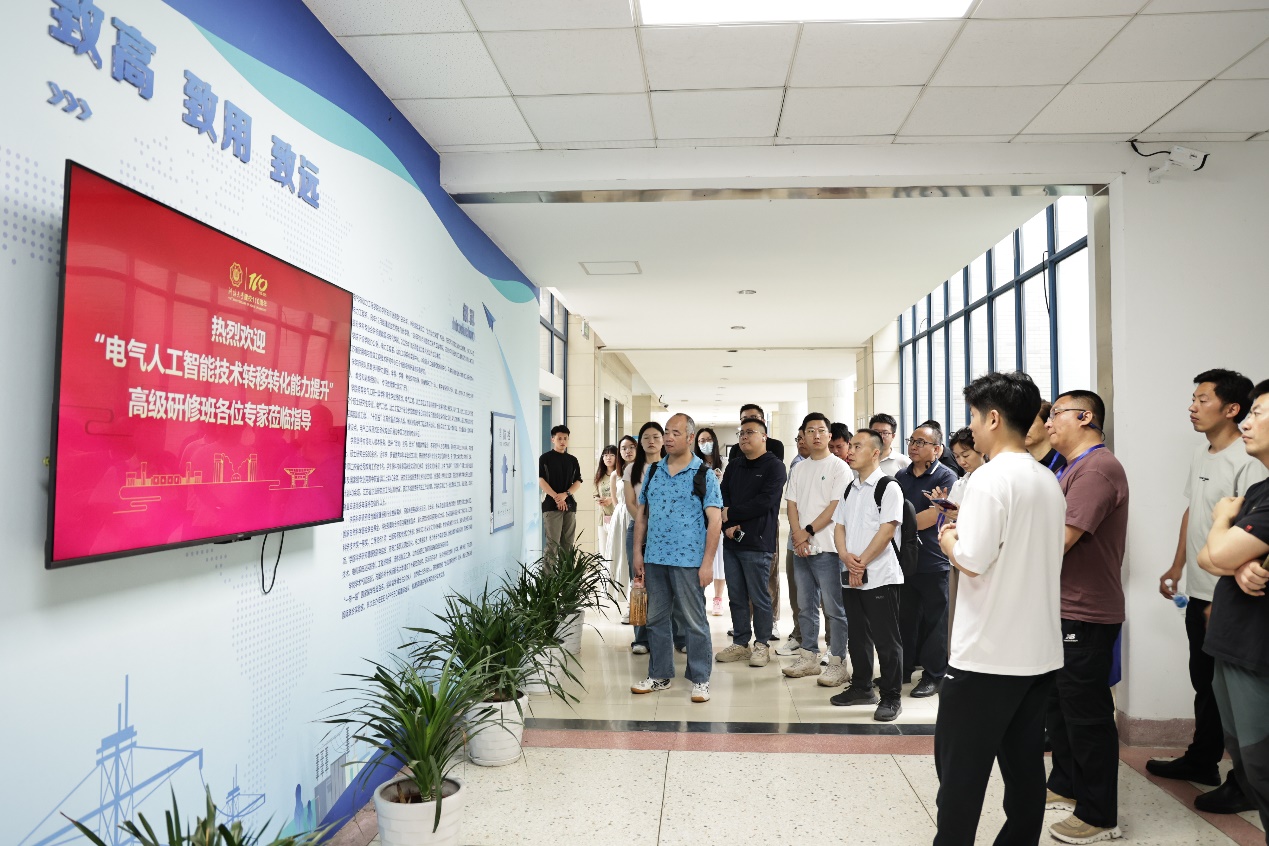 “电气人工智能技术转移转化能力提升”高级研修班是由中国电工技术学会承办的培训项目,主要面向全国从事电气人工智能及相关领域科学研究、设计、生产、制造、应用、管理以及技术转移转化等工作的具有中级及以上技术职称(或同等水平)的专业技术人员和管理人员,以及基层一线专业技术骨干。活动中,研修班成员参观了学院文化长廊,重点考察电气工程专业各个实验室与研究生工作室,并与国产自拍 专任教师开展深入交流。他们对我校电气工程学科在电力系统、电力电子等领域取得的科研成果给予了高度评价,并期待未来有机会到国产自拍 开展进一步学习与交流。