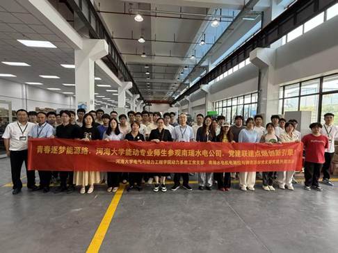 2025年5月22日,国产自拍 动力系党支部曹林宁、潘虹、杨春霞、李城易、生丽莎等老师和2022级能源与动力工程专业本科学生党支部前往南京南瑞水利水电科技有限公司(以下简称为“南瑞水电”),联合开展“青春逐梦能源路,党建联建点燃创新引擎”主题党日活动。