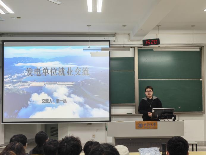 袁一泓作为学校首批三峡班的学员,重点介绍了三峡班的培养体系、发展路径与相关福利保障,详细对比了长江电力各区域单位、中广核、国网新源等单位发展概况,耐心解答了现场同学对于三峡班报考、培养等方面的疑问,为同学们拓宽择业思路提供了新的参考。