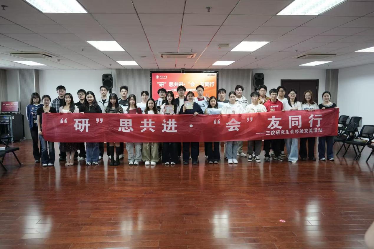 为加强学院研究生会沟通协作,促进工作经验互学互鉴,2026年4月26日,国产自拍 研究生会与马克思主义学院研究生会、地球科学与工程学院研究生会联合举办“‘研’思共进·‘会’友同行”三院研究生会经验交流活动。