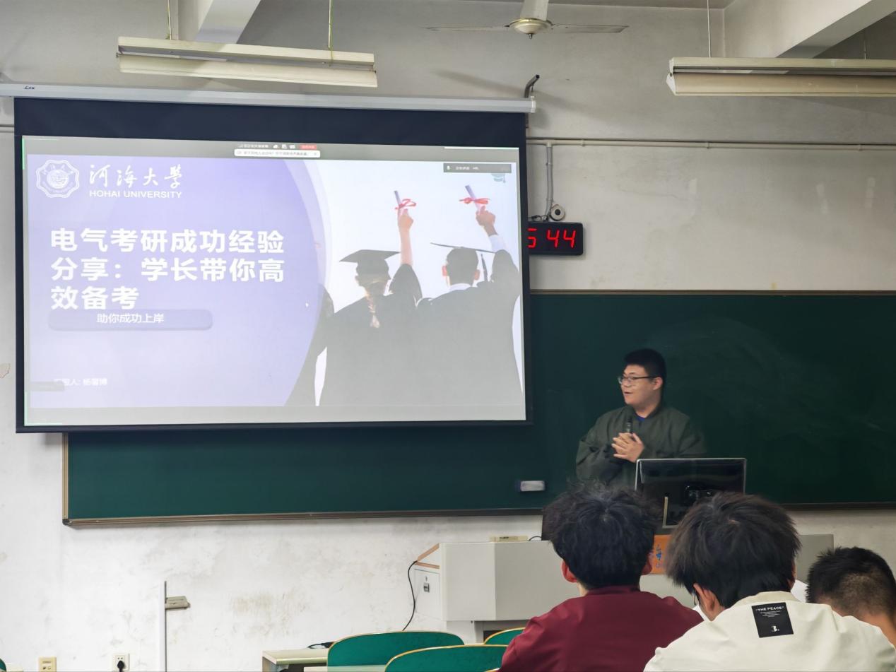 为持续助力2027届毕业生明晰发展方向、科学备考升学、精准对接就业,2026年4月19日,电气院学生会联合2023级团总支持续推进“研途领航・职向未来”系列专题讲座。讲座邀请学院2022级优秀本科生王斌、李承杰、杨馨博、刘震岳四位同学,面向2023级本科生系统分享考研备战经验与求职实战心得。